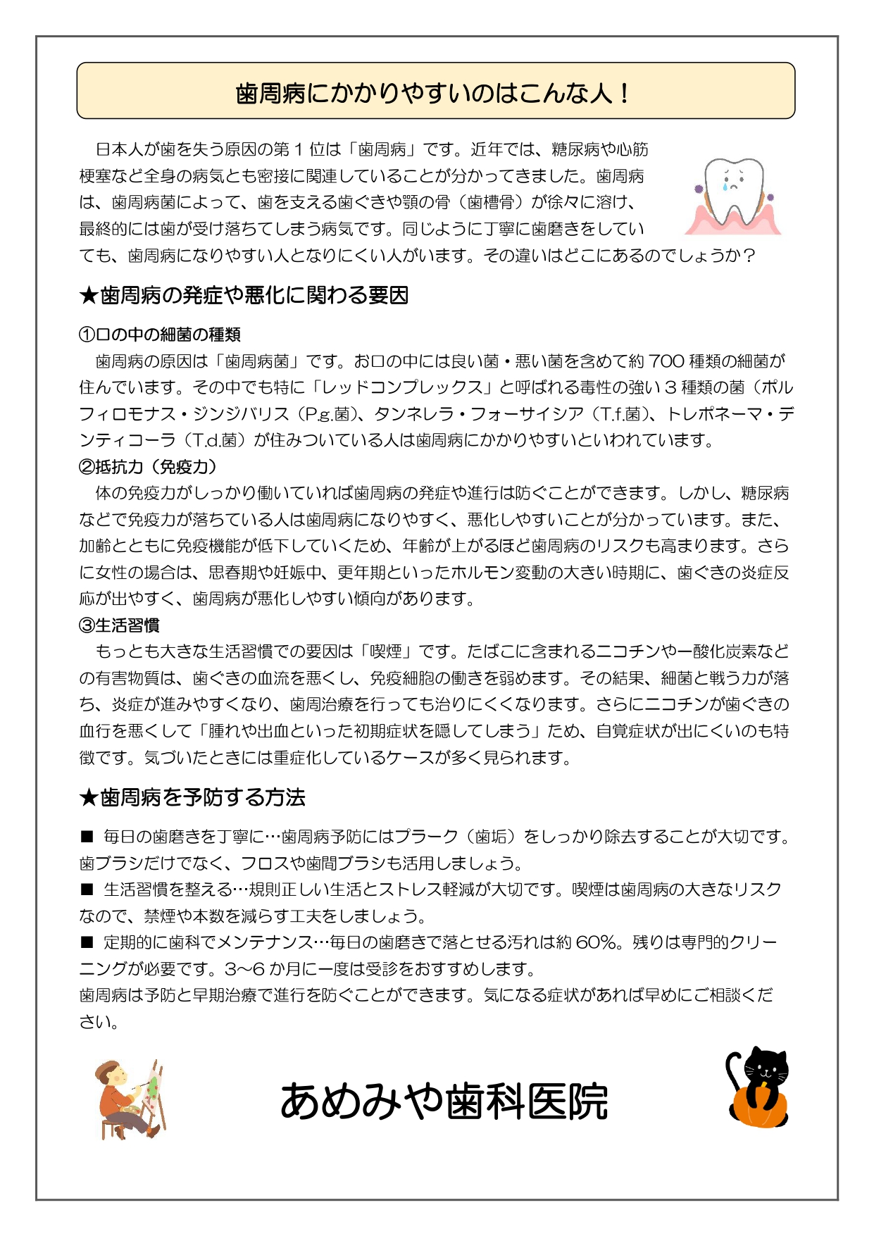しかし、糖尿病などで免疫力が落ちている人は歯周病になりやすく、悪化しやすいことが分かっています。