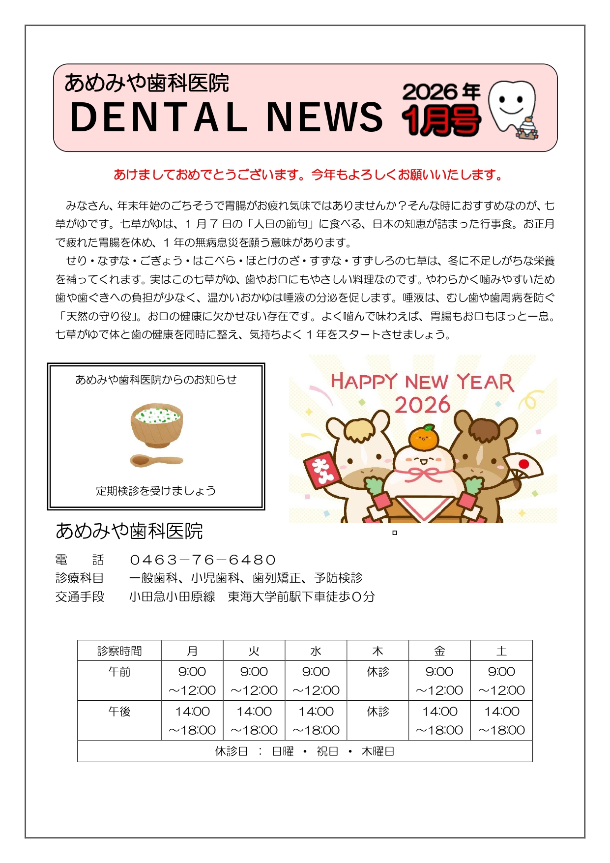 あめみや歯科医院 DENTAL NEWS 2026年1月号